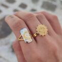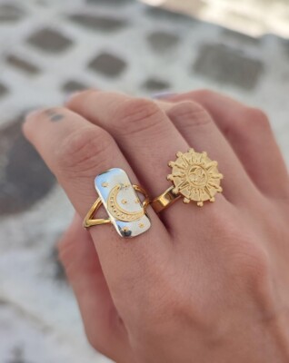 Ένα όμορφο σετ δαχτυλιδιών με ήλιο και ένα ορθογώνιο δαχτυλίδι με φεγγάρι με ανάμεικτο ασήμι και χρυσό, που συνδυάζεται υπέροχα με κάθε ντύσιμο!