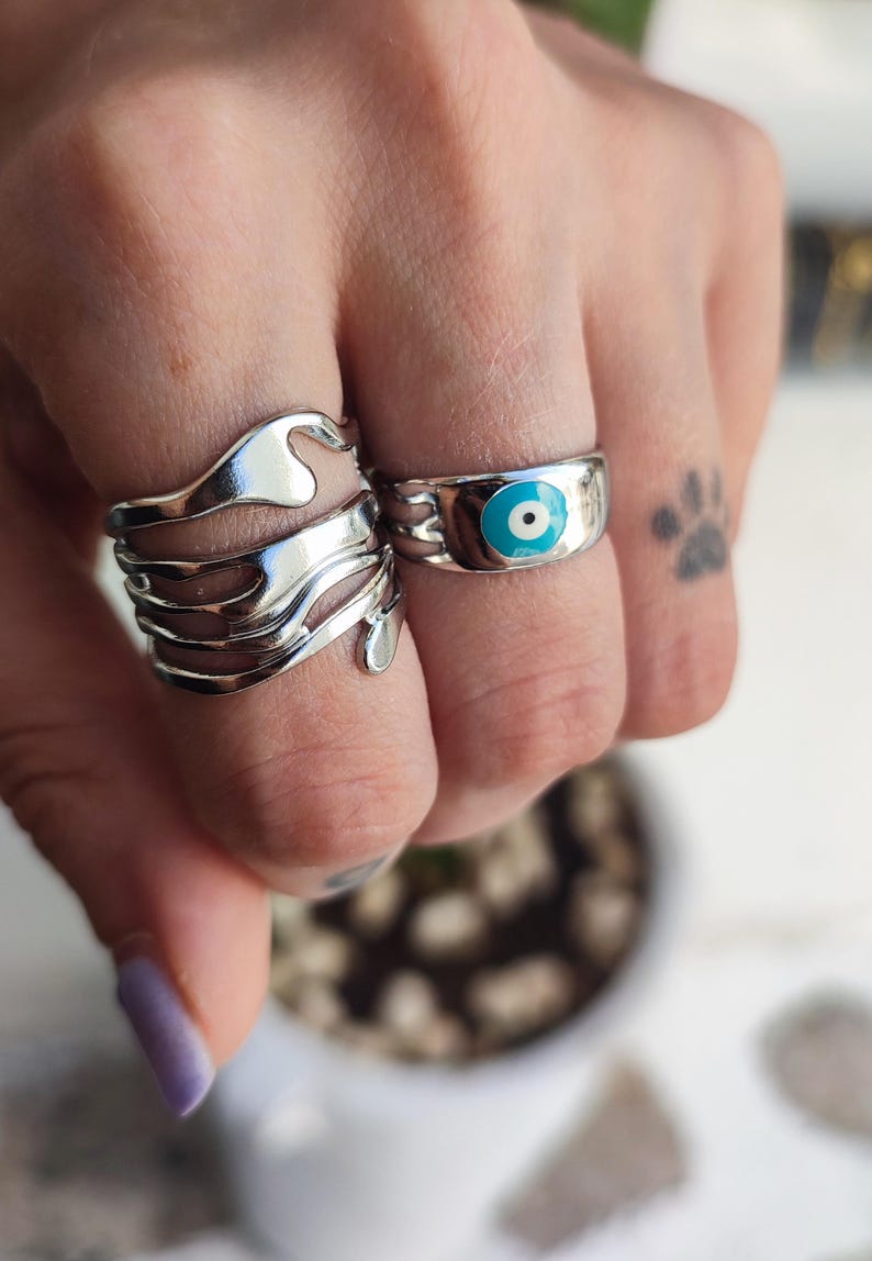 Σετ από δαχτυλίδι γεωμετρικό και δαχτυλίδι με κακό μάτι