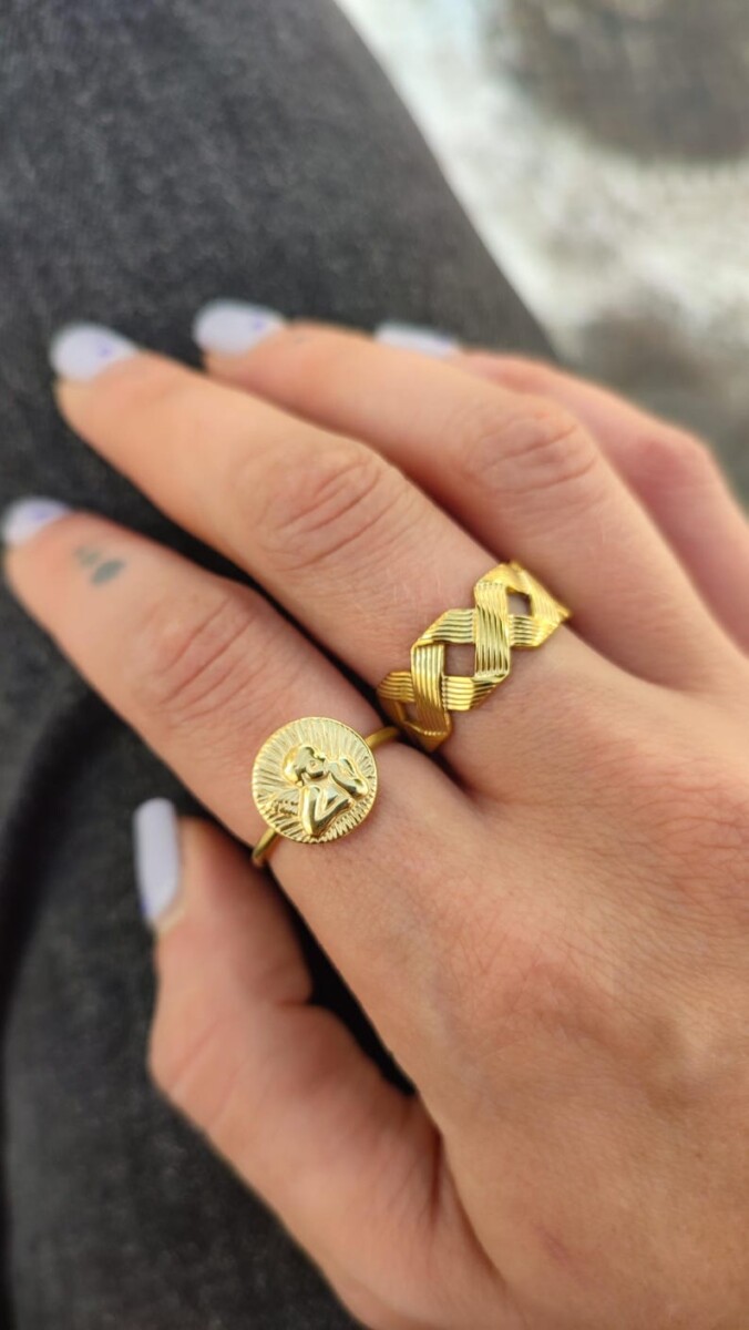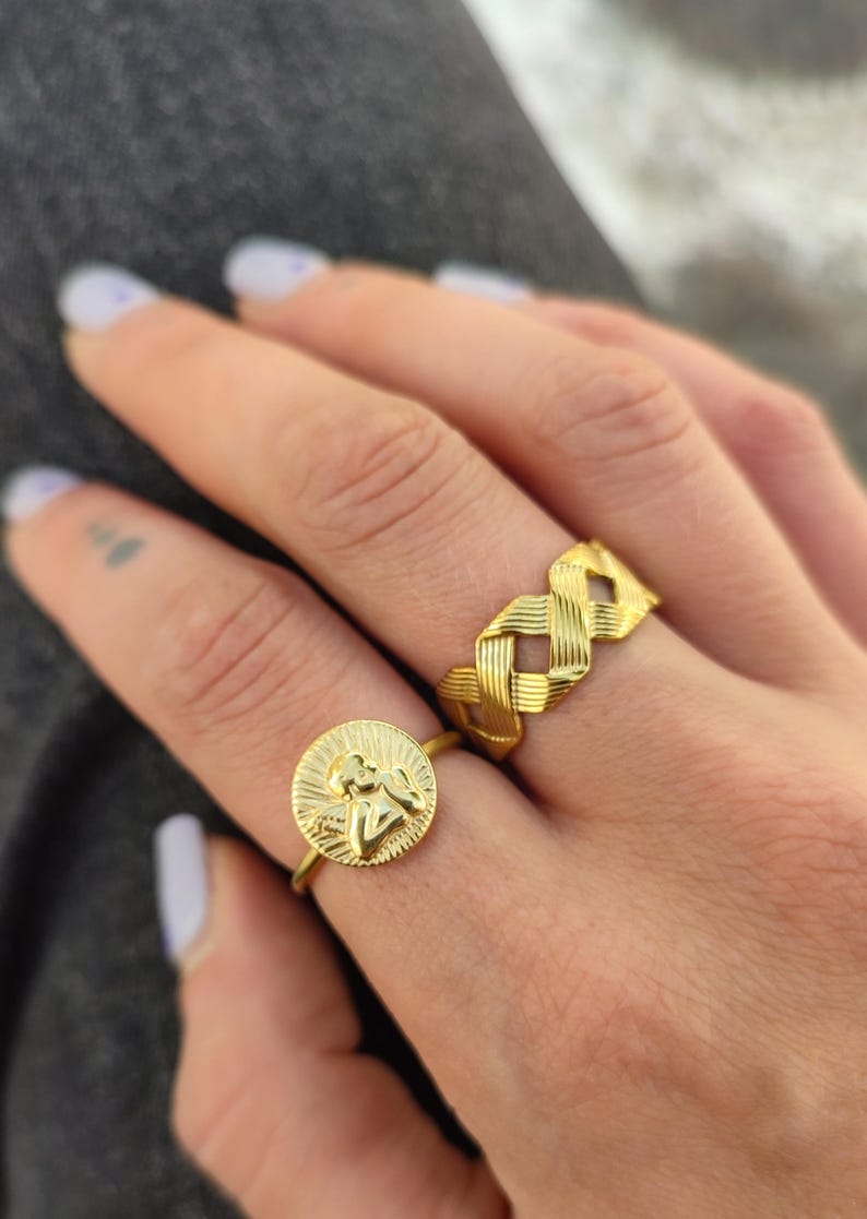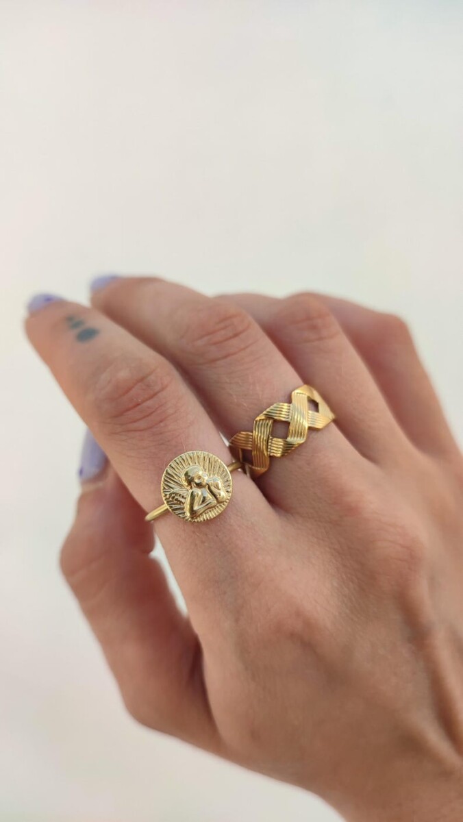 Ένας πολύ κομψός συνδυασμός ενός χρυσού δαχτυλιδιού με σχέδιο πλεξίματος και ενός όμορφου δαχτυλιδιού με αγγελάκι, που κάθε γυναίκα θα ήθελε να φοράει κάθε μέρα με κάθε ντύσιμο!